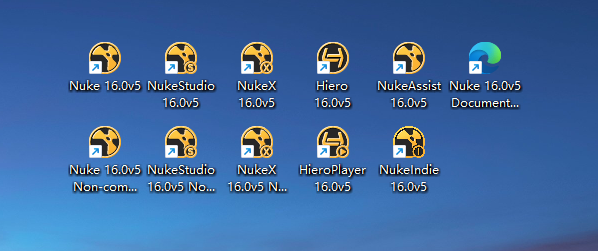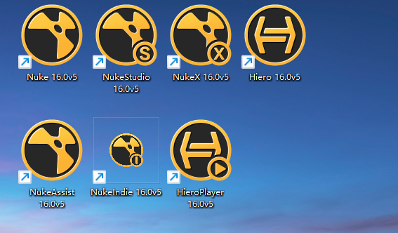 一般情况下,您可以选择启动 Nuke 加上版本号名称的图标打开使用如下图Nuke16.0v5(如果您安装的是Nuke15.0v4,则对应的启动图标名称为:Nuke15.0v4,其他不同版本都是一样的操作)。您可以阅读后面的文章了解并找到最适合您需求的 Nuke 产品